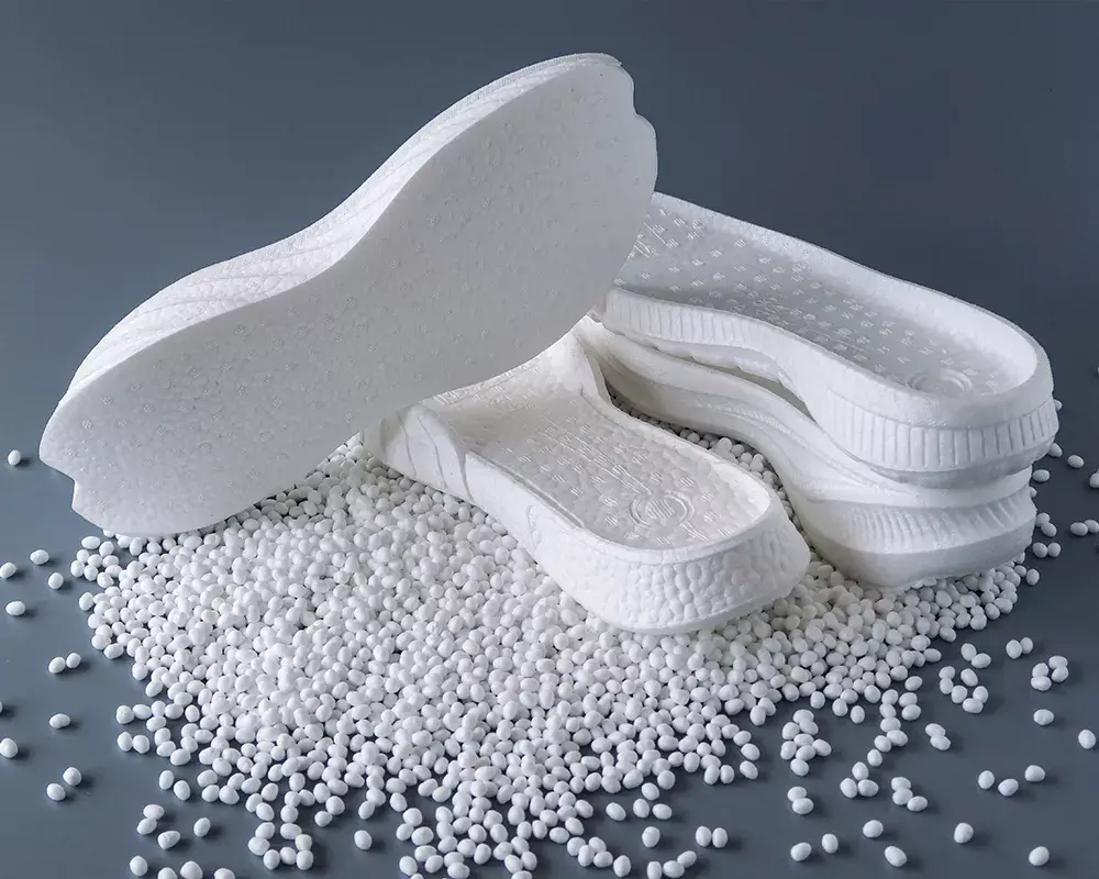 | Structure | Mousse continue en TPU | Micro-perles de TPU expansé (E-TPU) |